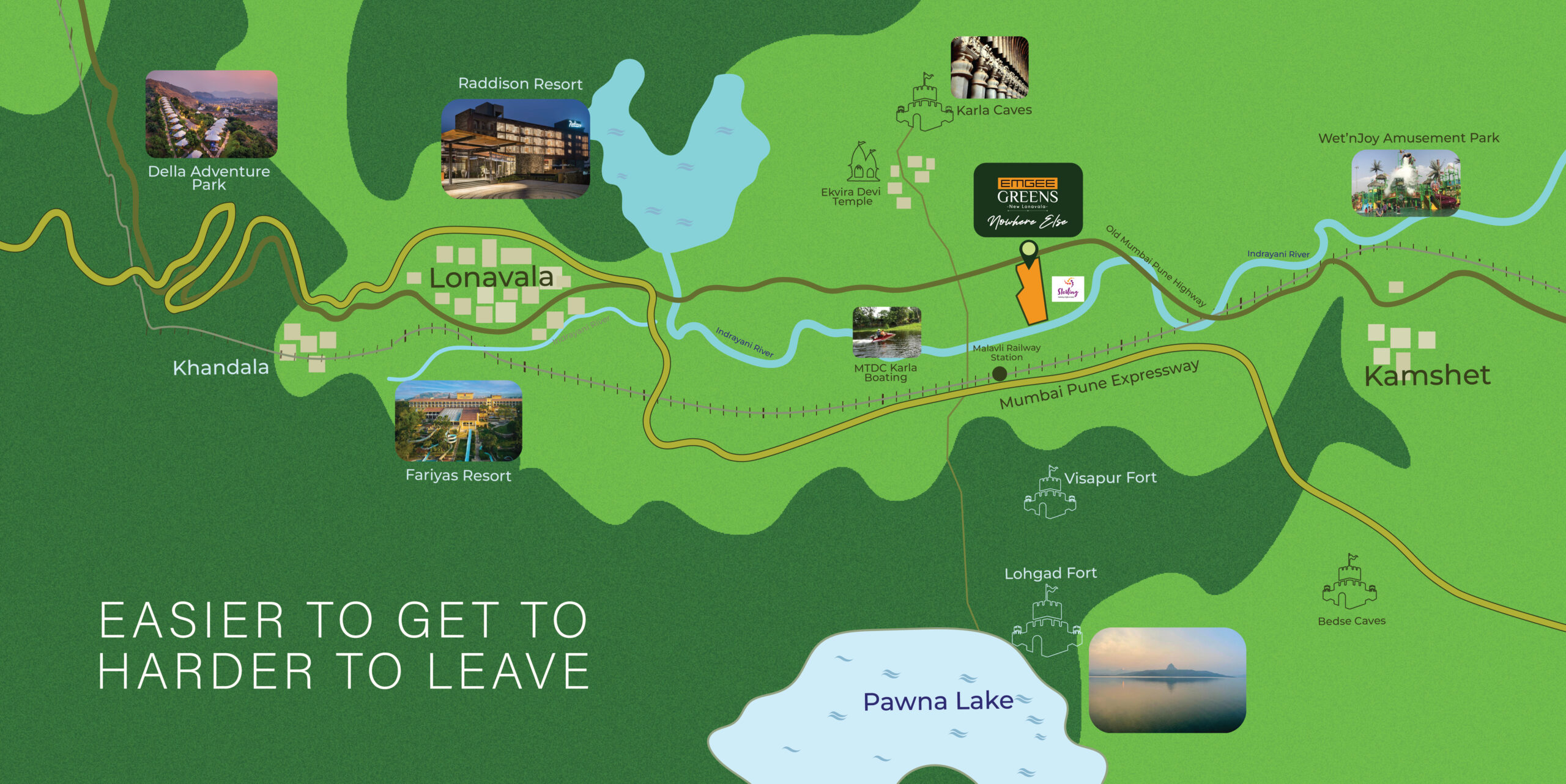 Strategically located just minutes from the Mumbai-Pune Expressway, with seamless access to the Old Mumbai-Pune Highway